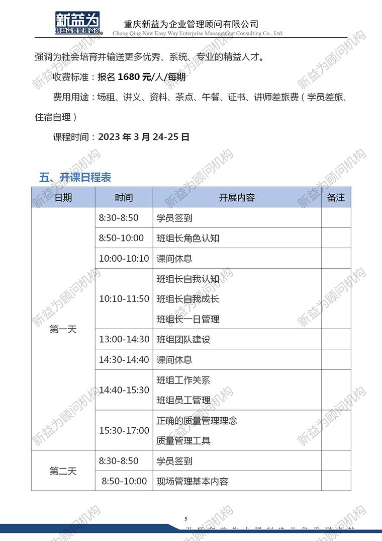 重庆2023.03 精益班组长胜任力提升训练营